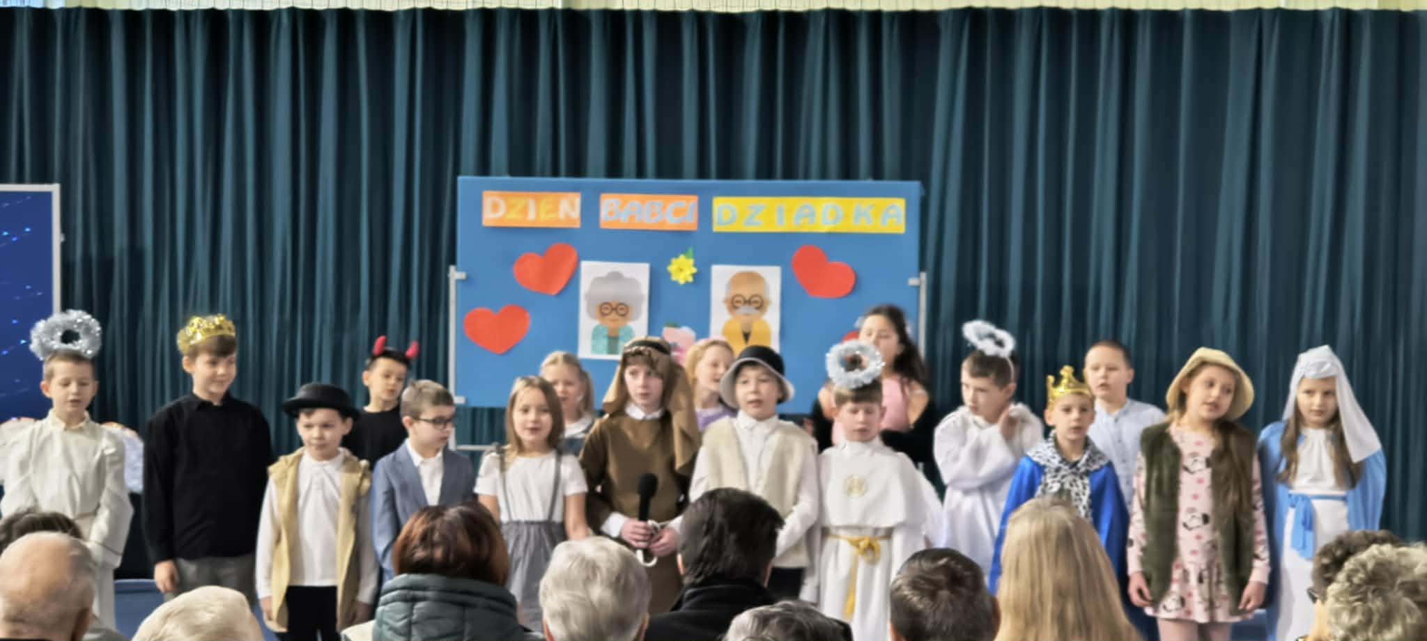 Uczniowie klas IIa i IIb przygotowali wspólne przedstawienie pt. „Niesforna klasa”, które powstało w okresie przedświątecznym. Spektakl został ponownie zaprezentowany podczas uroczystości z okazji Dnia Babci i Dziadka i stanowił jej pierwszą, niezwykle wymowną część. Przedstawienie opowiadało historię klasy pełnej chaosu i nieposłuszeństwa, która dzięki refleksji oraz przesłaniu Świąt Bożego Narodzenia przechodzi wewnętrzną przemianę. Na scenie pojawili się anioł i diabeł, a także Święta Rodzina, pastuszkowie oraz Trzej Królowie. To właśnie wartości płynące z Bożego Narodzenia – miłość, dobro, zgoda i wzajemny szacunek – stały się impulsem do zmiany postaw bohaterów. Finałem spektaklu było przywrócenie ładu, harmonii i porządku w klasie.