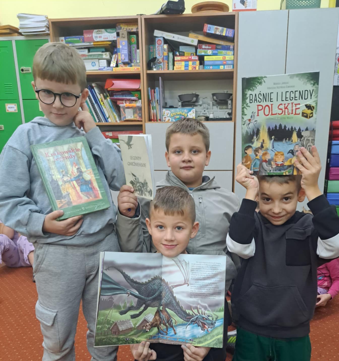 Podczas zajęć uczniowie poznawali, czym jest legenda – dowiedzieli się, że to opowieść przekazywana z pokolenia na pokolenie, łącząca elementy prawdy historycznej z fantazją i wierzeniami ludowymi. Dzieci z zaciekawieniem wysłuchały wybranych polskich legend, m.in. o Lechu, Czechu i Rusie, Smoku Wawelskim czy Złotej Kaczce.